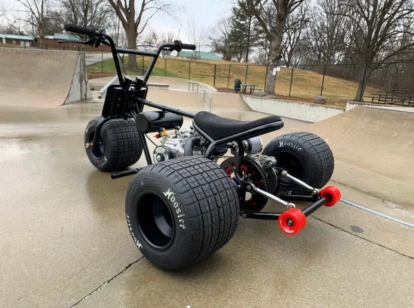 A maxi mini trike is a high-performance mini trike featuring wide tires, stable handling, and strong construction for both adults and kids.